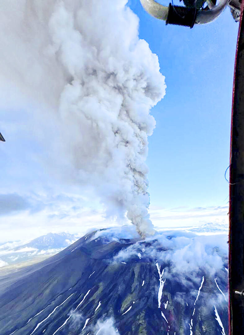 The Kamchatka branch of the Russian Ministry of Emergency Situations said that an ash plume rising to 6,000m had been recorded following the volcano’s eruption. The volcano itself stands at 1,856m.