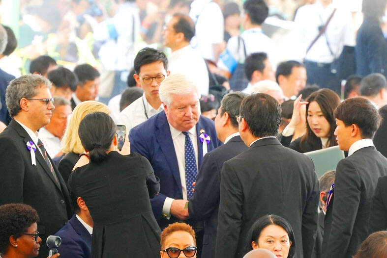 A delegation led by Representative to Japan Lee Yi-yang (李逸洋) yesterday attended the Hiroshima Peace Memorial Ceremony, marking the first time an official Taiwanese delegation has participated in the annual ceremony.