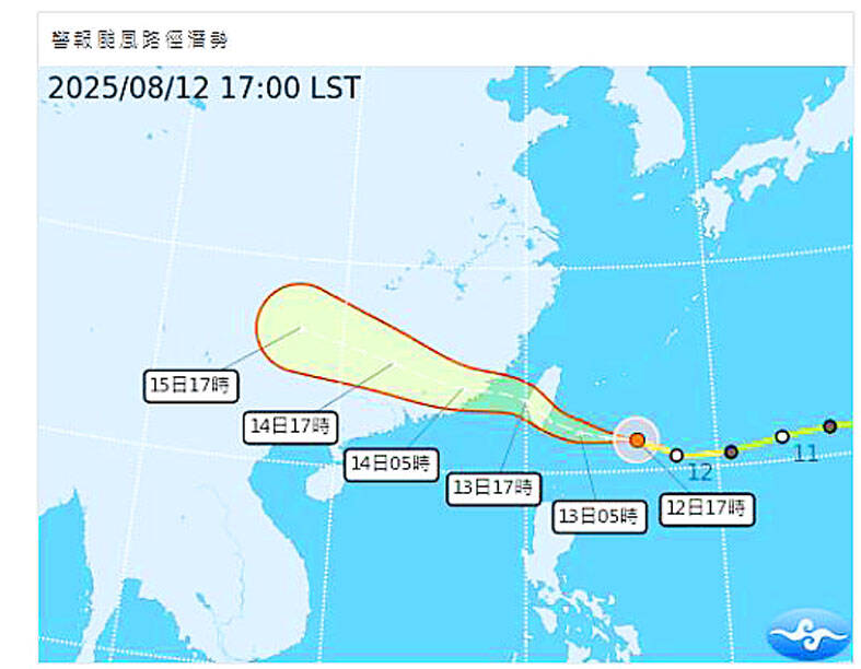 CWA weather forecaster Liu Yu-chi (劉宇其) said that Podul was already affecting waters off eastern Taiwan, the Bashi Channel and the southern part of the Taiwan Strait, and is expected to intensify slightly and expand its radius.