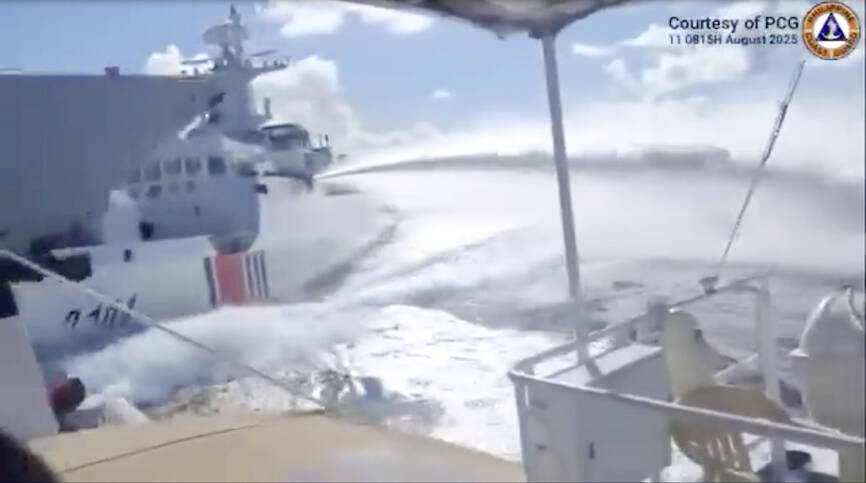 Video footage made public by the Philippines showed the China Coast Guard ship blasting its water cannon with a number of Chinese personnel standing at the bow shortly before that section was hit by the fast-turning Chinese navy ship.
