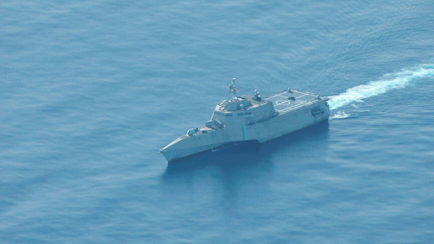 The USS Higgins, a guided missile destroyer, and the USS Cincinnati, a littoral combat ship, were shadowed by a Chinese navy ship while sailing about 30 nautical miles (56km) from the shoal.