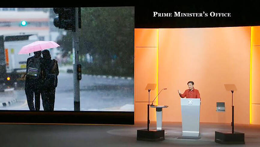 In his National Day Rally speech on Sunday, Singaporean Prime Minister Lawrence Wong (黃循財) quoted the Taiwanese song One Small Umbrella (一支小雨傘) to describe his nation’s situation.