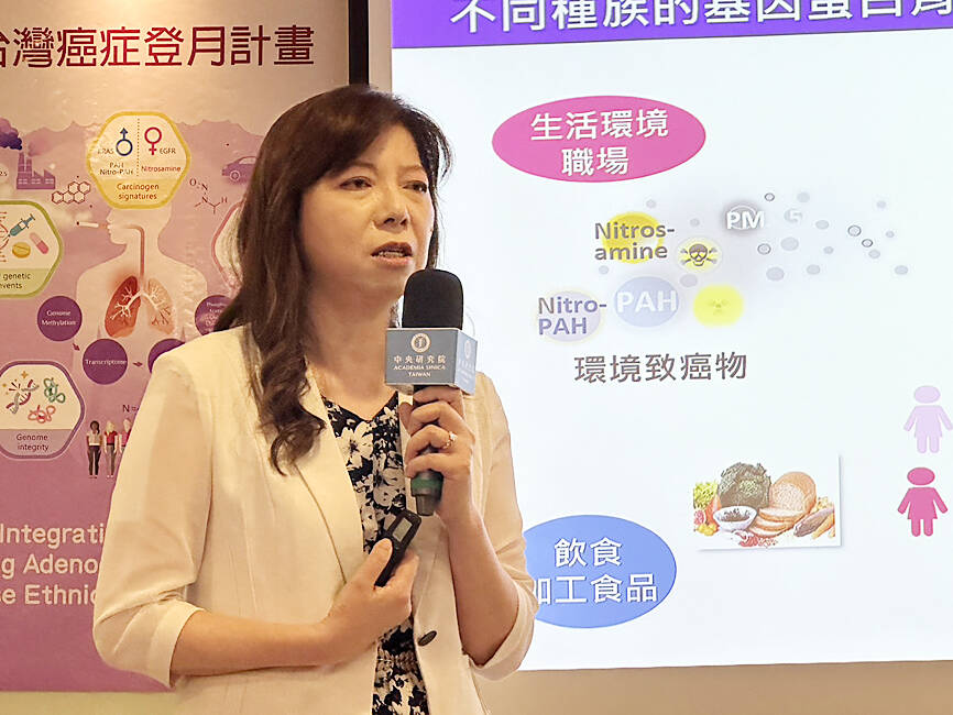 Researchers from Academia Sinica and the US-based National Cancer Institute conducted the study, “Integrative analysis of lung adenocarcinoma across diverse ethnicities and exposures on cancer genomics,” using 406 tumors from North Americans, Eastern Europeans and Asians, coauthor Chen Yu-ju (陳玉如) told a news conference in Taipei yesterday.
