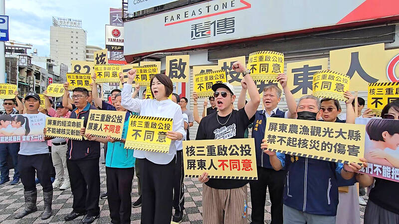 If the Ma-anshan Nuclear Power Plant is restarted and an accident occurs, economic activity in Pingtung County might cease, Pingtung County Commissioner Chou Chun-mi (周春米) of the Democratic Progressive Party said at a protest in Pingtung City yesterday.