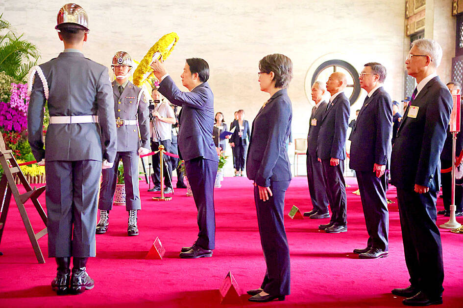 Lai, Vice President Hsiao Bi-khim (蕭美琴) and other top officials in the morning attended a ceremony at the National Revolutionary Martyrs’ Shrine in Taipei’s Zhongshan District (中山) to honor those who sacrificed their lives in major battles.