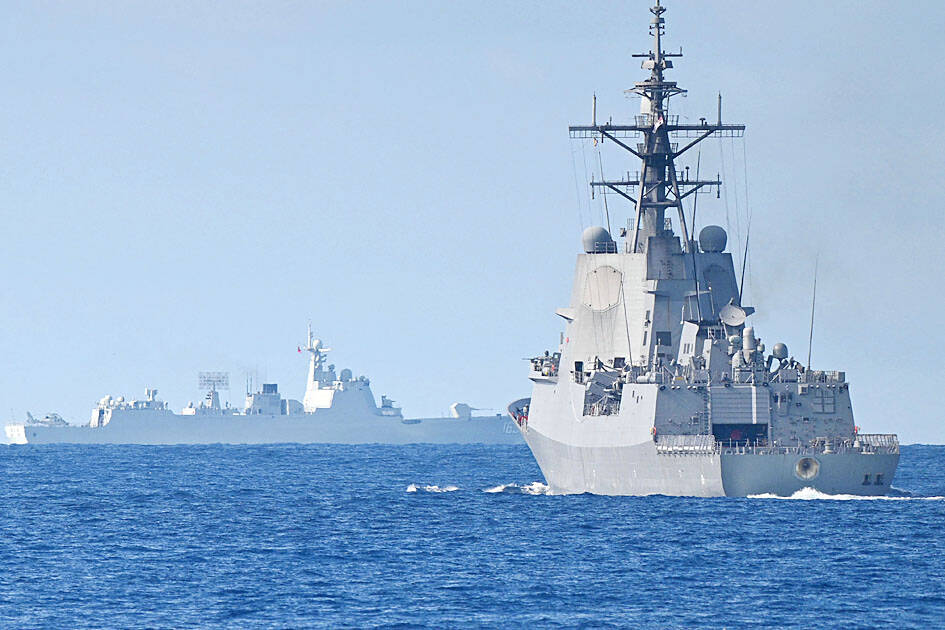 Chen Shih-min (陳世民), an associate professor of political science at National Taiwan University, said the joint Canadian-Australian operation could be interpreted as a pointed response to Beijing’s military parade on Wednesday, which Chinese President Xi Jinping (習近平) attended alongside Russian President Vladimir Putin and North Korean leader Kim Jong-un.