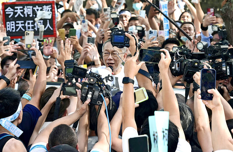 Former Taiwan People’s Party (TPP) chairman Ko Wen-je (柯文哲) was released on NT$70 million (US$2.29 million) bail yesterday, bringing an end to his year-long incommunicado detention as he awaits trial on corruption charges.