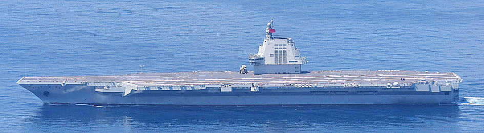 The Japanese Ministry of Defense first disclosed the Fujian’s passage on Thursday, reporting that its Maritime Self-Defense Force sighted the vessel at about 1pm sailing southwest in waters about 200km northwest of the Diaoyutai Islands (釣魚台), known in Japan as the Senkaku Islands.