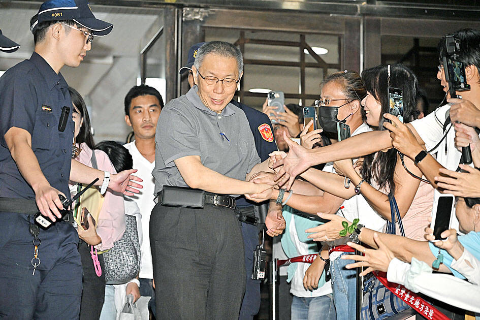 Ko faces a potential sentence of 28-and-a-half years for allegedly accepting bribes of NT$17.1 million in a property development deal during his tenure as Taipei mayor and embezzling political donations during his presidential campaign last year as leader of the Taiwan People’s Party.