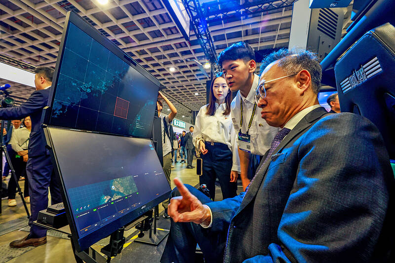 The Ministry of National Defense’s pavilion is divided into four sections: joint operations weapons, uncrewed systems, dual-use technologies and talent recruitment.