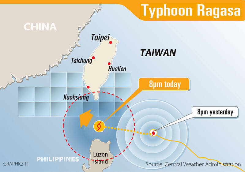 Although the projected path showed that Ragasa’s center was unlikely to make landfall in Taiwan, the typhoon remained well-structured and had a broad radius, CWA forecaster Wu Wan-hua (伍婉華) said, adding that it could get stronger as it moved closer to Taiwan.