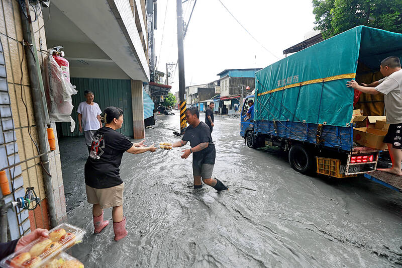 “I was very scared... About 500m in front of me, the stream suddenly swelled into a flood,” a 54-year-old relief volunteer surnamed Shih (施) said at a makeshift shelter. “I heard police broadcasting on the street: ‘The water is coming, run.’”