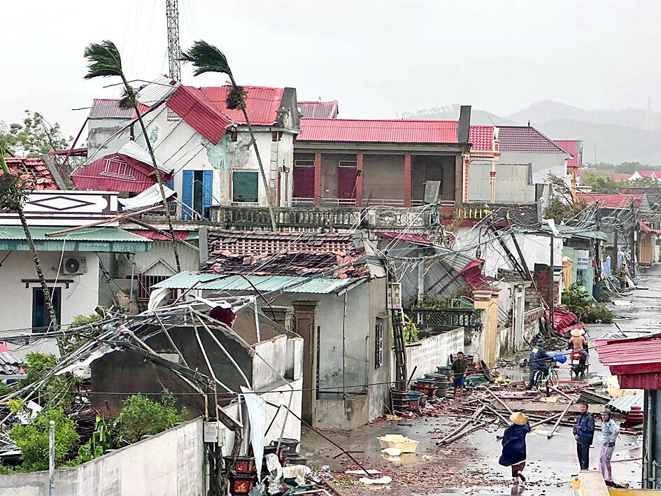 Images showed corrugated metal roofs blown off buildings and household debris strewn across inundated streets in Vietnam’s coastal Nghe An Province.