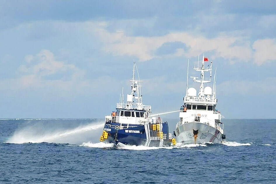 Earlier, the Chinese Ministry of Foreign Affairs urged Manila not to challenge Beijing’s efforts to “safeguard its territorial sovereignty and maritime rights and interests” after Sunday’s incident in the Spratly Islands (Nansha Islands, 南沙群島), in which the Philippines said China deployed a water cannon and rammed a Philippine vessel.