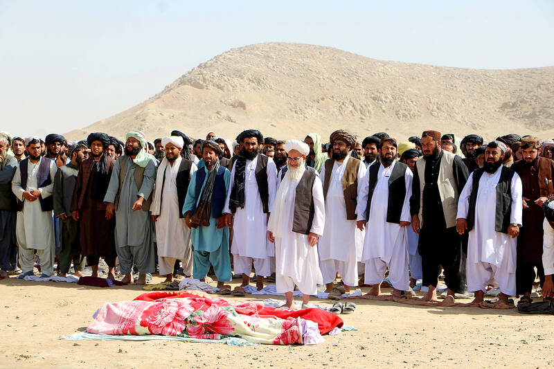 Residents and Taliban officials attended the funeral of seven members of the same family in Spin Boldak, a journalist saw.