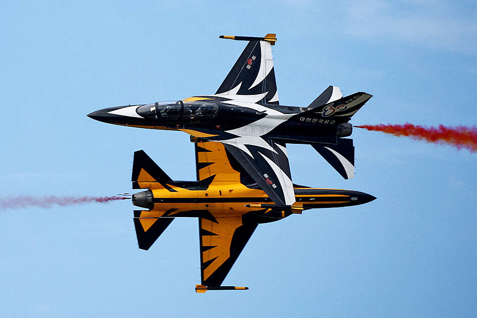 The ADEX began with three days of air shows at an air base, including flights by its newly developed KF-21 jet. The festivities would be followed next week by business exhibitions at a conference center.
