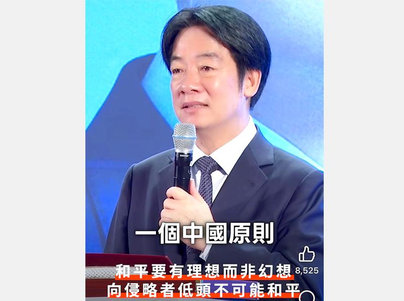 President William Lai (賴清德) yesterday said that it would be impossible to achieve cross-strait peace simply by accepting the so-called “1992 consensus” and Beijing’s “one China” principle.