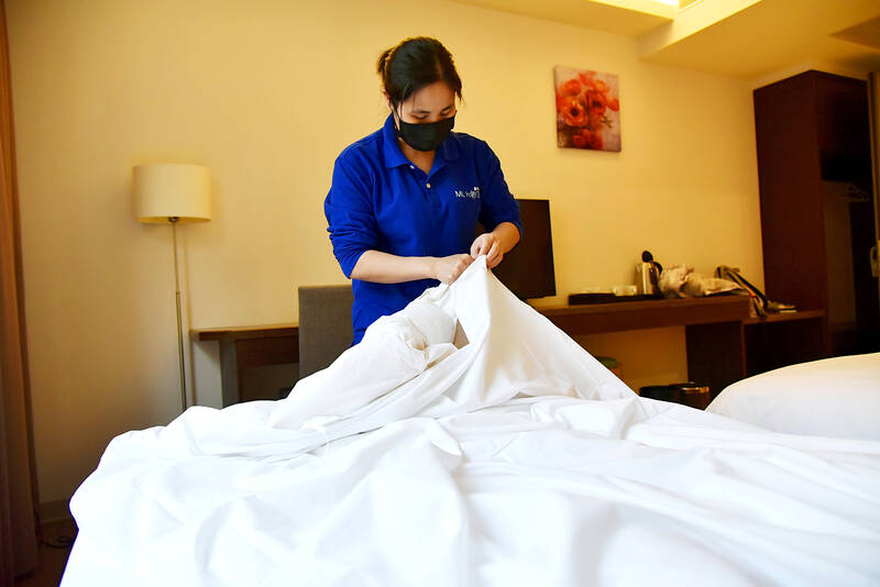 Hotel and Lodging Division Deputy Director Cheng Yi-ping (鄭憶萍) said that hoteliers from the first quarter of next year could begin recruiting migrant workers to do housekeeping and cleaning, as well as operate the front desk, and provide food and beverage services.
