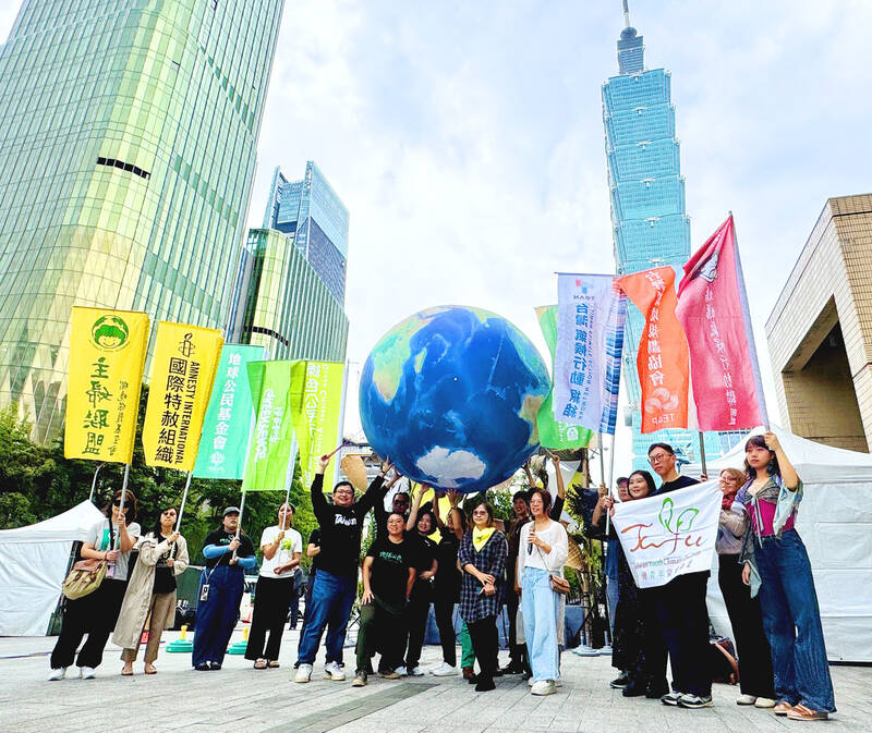 Citing UN data, Taiwan Climate Action Network Research Center director Chao Chia-wei (趙家緯) said that global carbon reduction would fall short of Paris Agreement targets, as reduction pledges collectively amount to only 17 percent of carbon cut by 2035 compared with the 2019 baseline year.