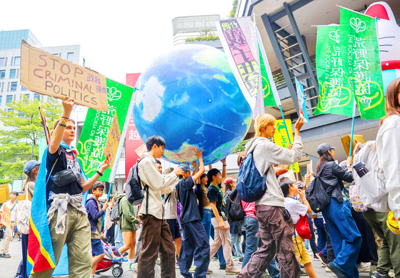 Environmental Rights Foundation executive director Tu Yu-wen (涂又文) said climate issues are intertwined with the right to life, so climate action and policies should not be oriented around economic development.