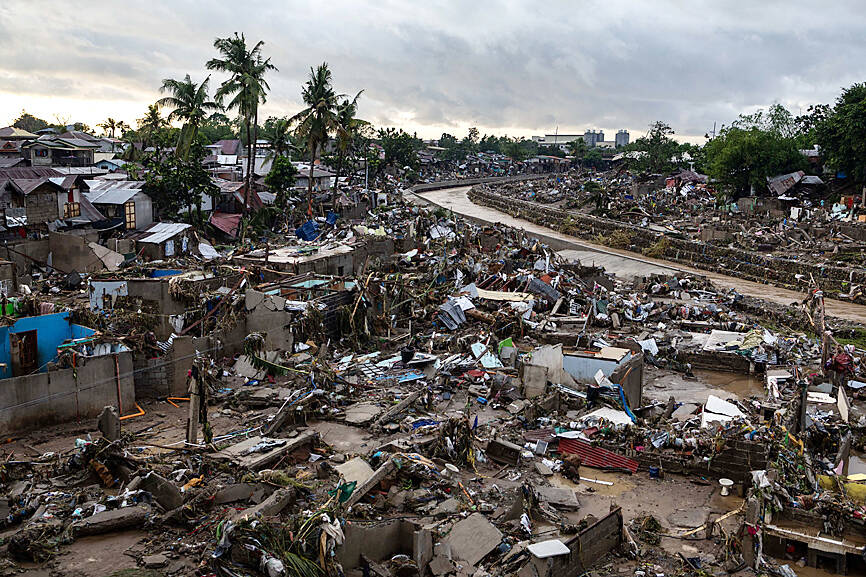“Around four or five in the morning, the water was so strong that you couldn’t even step outside,” Reynaldo Vergara, 53, said yesterday, adding that everything in his small shop in Mandanaue had been lost when a nearby river overflowed.