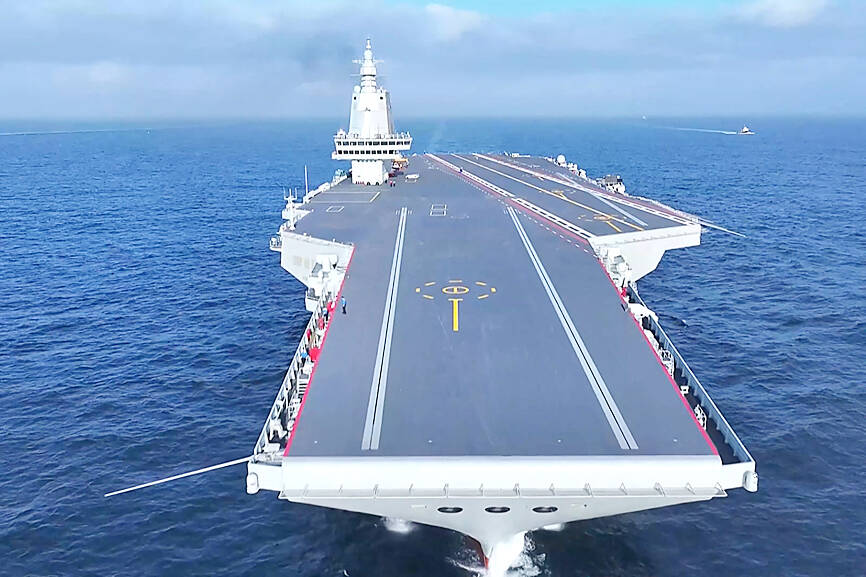 China’s third carrier is “by many measures more capable than the Liaoning and the Shandong,” said Collin Koh (許瑞麟), an expert in regional naval affairs at Nanyang Technological University in Singapore.