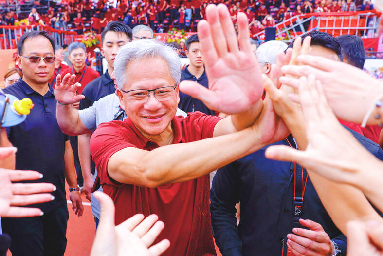 In response to media queries on whether the US-China competition in artificial intelligence (AI) would affect Taiwan’s position in the industry, Huang said that AI would influence every country, every company and everyone.