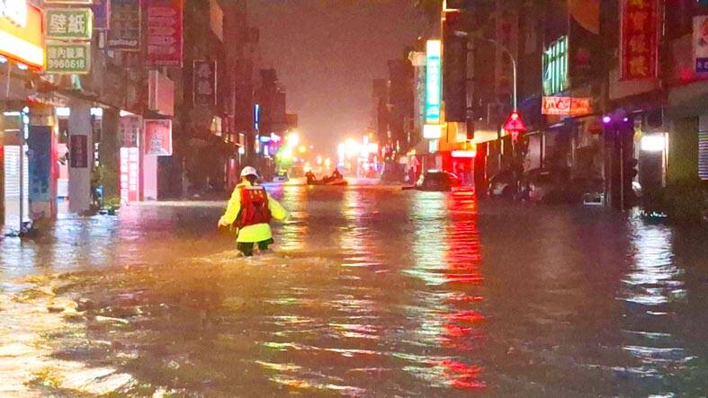 Heavy rain poured down in Suao starting on Tuesday night, with some streets flooding up to one-story high.