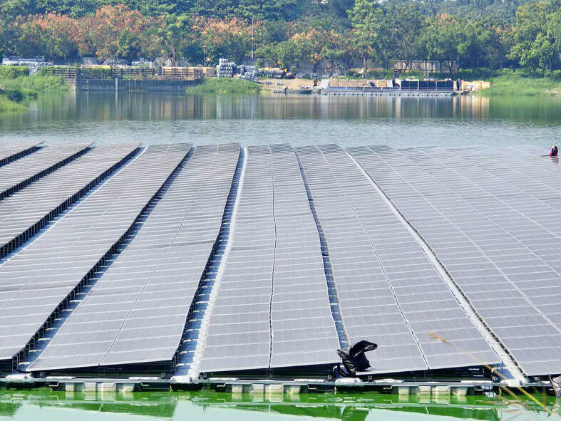 Citing another bill proposed by Chinese Nationalist Party (KMT) Legislator Alicia Wang (王育敏) in November last year, Democratic Progressive Party (DPP) Legislator Chung Chia-pin (鍾佳濱) said revising the Environmental Impact Assessment Act to stipulate that the five major types of floating solar panel projects — wetlands, ponds, fish farms, flood detention basins and reservoirs — must undergo an EIA would be more appropriate.