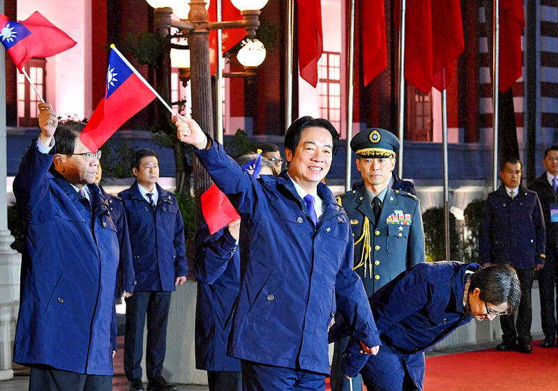 President William Lai (賴清德), in his New Year’s Day address yesterday, urged the opposition parties to put national security before partisan politics and swiftly pass a NT$1.25 trillion (US$39.76 billion) special defense budget amid China’s “rising expansionary ambitions.”