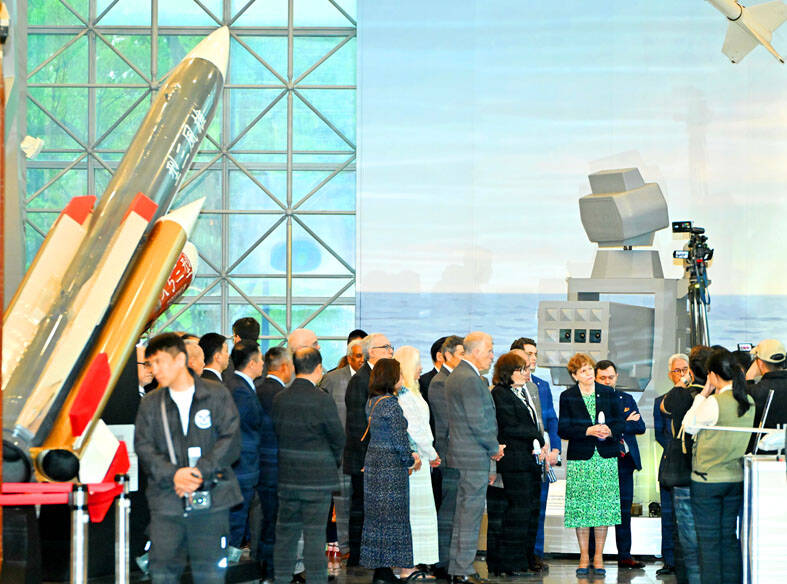 Later yesterday, the delegation also visited the National Chung-Shan Institute of Science and Technology (NCSIST), where they saw displays showing the results of a live-fire test of a drone-mounted warhead.