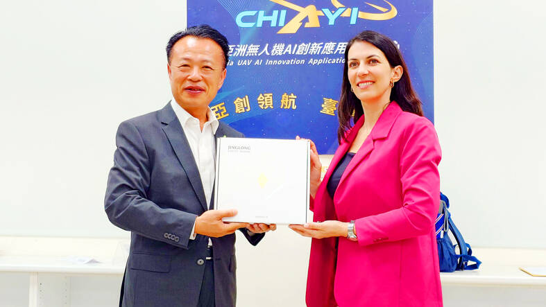 Chiayi County Commissioner Weng Chang-liang (翁章梁) welcomed the delegation and said he hoped the visit would help expand market opportunities for Taiwanese drone makers in the EU.