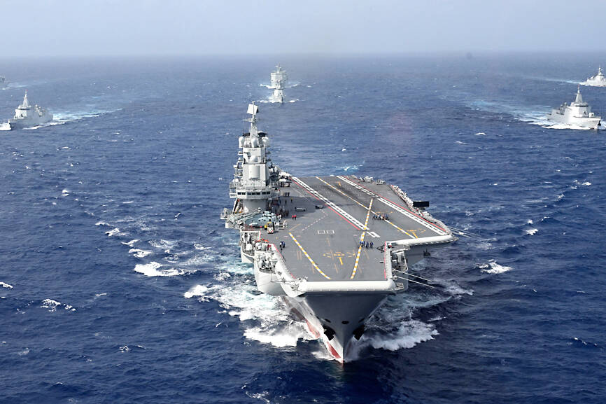 China on Wednesday teased in a video an aircraft carrier that could be its fourth, and the first using nuclear power, while making an allusion to Taiwan and vowing to further build up its islands, as it looks to boost maritime power, secure resources and bolster territorial claims. The video, issued on the eve of the 77th founding anniversary of the Chinese People’s Liberation Army Navy, featured fictional officers with names that are homophones of three commissioned aircraft carriers, the Liaoning (遼寧), Shandong (山東) and Fujian (福建). Titled Into the Deep, it showed a 19-year-old named “Hejian” (何劍) joining the group, sparking