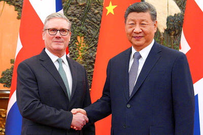 British Prime Minister Keir Starmer and Chinese President Xi Jinping (習近平) yesterday hailed a reset of ties, pledging to build an economic partnership with deals including a major investment by AstraZeneca that they said would benefit both countries.On the key day of his four-day visit to China, the
