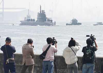 Taiwan’s first indigenous submarine, the Hai Kun (海鯤), or Narwhal, yesterday departed from Kaohsiung to start its first submerged sea trial, where it was expected to dive to at least 50m.CSBC Corp, Taiwan (台灣國際造船) on Wednesday announced the trial, marking the first time the shipbuilder has publicly