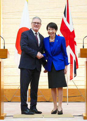 The UK and Japan agreed to deepen defense and economic ties, visiting British Prime Minister Keir Starmer said yesterday. “We set out a clear priority to build an even deeper partnership in the years to come,” Starmer said after a bilateral meeting in Tokyo. “That includes working together to streng