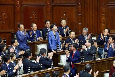 The Japanese parliament yesterday elected conservative Sanae Takaichi as the nation’s first female prime minister, a day after her struggling party struck a coalition deal with a new partner expected to pull her governing bloc further to the right.Takaichi replaces Shigeru Ishiba, ending a three-mon