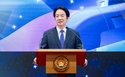 President William Lai (賴清德) today said that Taiwan is determined to defend its sovereignty and boost defense in the face of China's rising ambition for expansion.The international community is watching to see whether Taiwanese possess the resolve to defend themselves, Lai said in his New Year speech