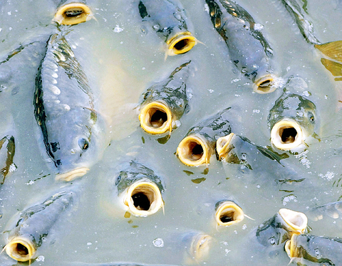 Maybe these fish want to kiss the person taking their picture, but probably not. Fish usually make this face when they are hungry and they think there is food nearby.