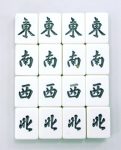 The wind tiles are East 東 (dong1), South 南 (nan2), West 西 (xi1), and North 北 (bei3).