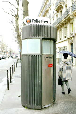 The super-restroom, which opened earlier this month in Berlin, is the latest word in modern architecture. It has an elevator and a 24-hour reception, and it costs .50 euros (about NT$20) to use.
