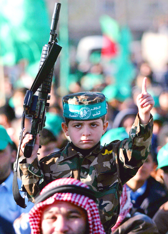 “The people love their little kids to be dressed in military clothes,” says Bilbaysi. “They want to ... prepare (the children) so they will be ready for the battle that lies ahead.”(AFP)