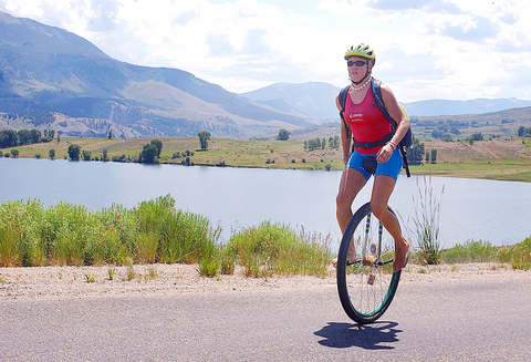 這名女子似乎不覺得騎單輪腳踏車是一項挑戰。她正在從事多數人辦不到的任務︰騎著單輪腳踏車橫越美國,總長逾四千五百公里,她連鞋子都沒穿!