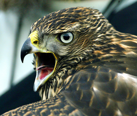 這是一隻蒼鷹,是獵食較小型鳥類與老鼠等其他動物的鳥類之一。照片中的這隻鳥很年輕,但仍有這種鳥類都有的彎曲鳥喙。