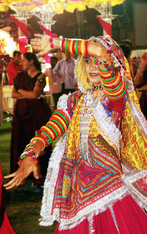 這名女子正在慶祝一個叫「九夜節」的印度節慶。九夜節是為慶祝許多不同的印度女神而舉行。