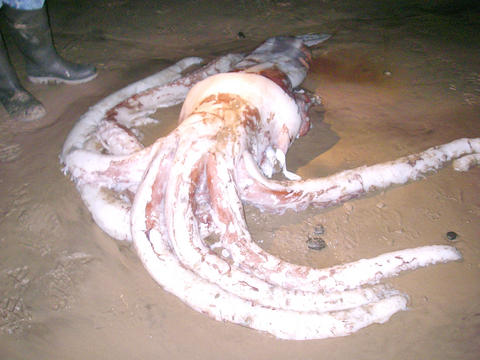 一條跟巴士一樣長、重達兩百五十公斤的大王魷魚,被沖刷到了澳洲一處海灘。