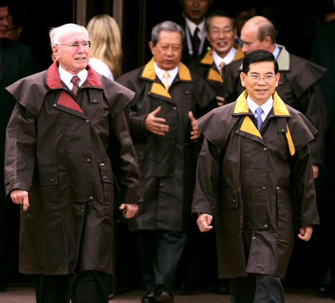 亞太經濟合作會議週開始時,澳洲總理約翰·霍華德向亞太領袖們保證,不會安排領袖們穿著緊身泳衣泳褲與夾腳拖鞋在雪梨趴趴走,並拍下亞太經合會團體照。