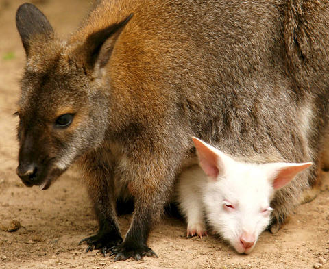 阿根廷布宜諾斯艾利斯動物園裡的一對紅袋鼠產下一隻全白的小袋鼠。這隻白化的小袋鼠吸引了很多遊客前往觀賞。他們通過袋鼠區,去看這隻在袋鼠媽媽育兒袋裡的小袋鼠。