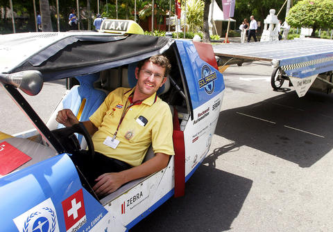 In one year from now, after traversing much of Asia, Australia, North America and Africa, he will return to Switzerland to try and drum up support for the commercial possibilities of solar cars.(AFP)