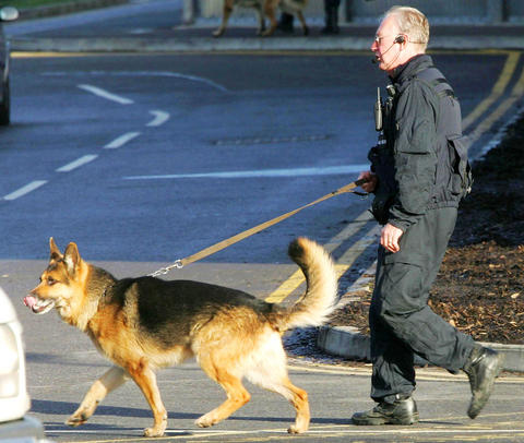 A trial of the German dogs by Derbyshire Police in east central England worked out. Now 16 other forces have decided to get dogs from Germany too. Each specially trained dog costs £2,000 (NT$127,200).